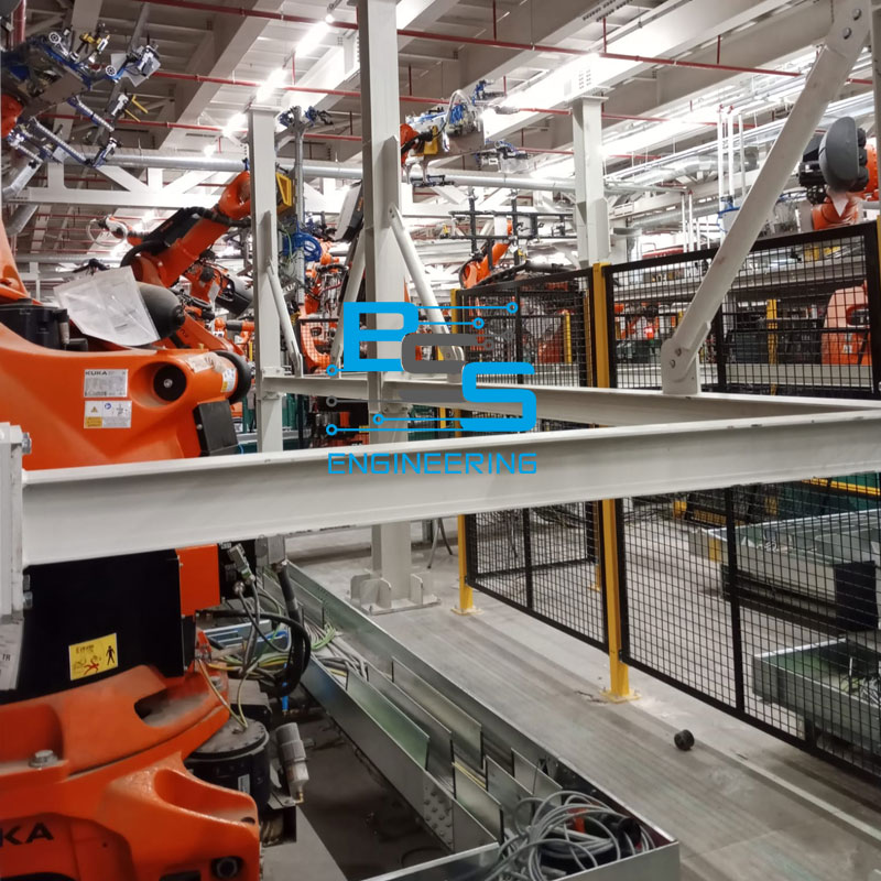 BSS Engineering Group olarak robotik sistemlerin entegrasyonunda sahip olduğumuz uzmanlığı, gerçekleştirdiğimiz robot hattı kurulum projeleriyle ortaya koyuyoruz. Bu bölümde, farklı sektörlere özel olarak tasarlanmış robot hatlarının montaj, test ve devreye alma süreçlerinden kareleri inceleyebilirsiniz.